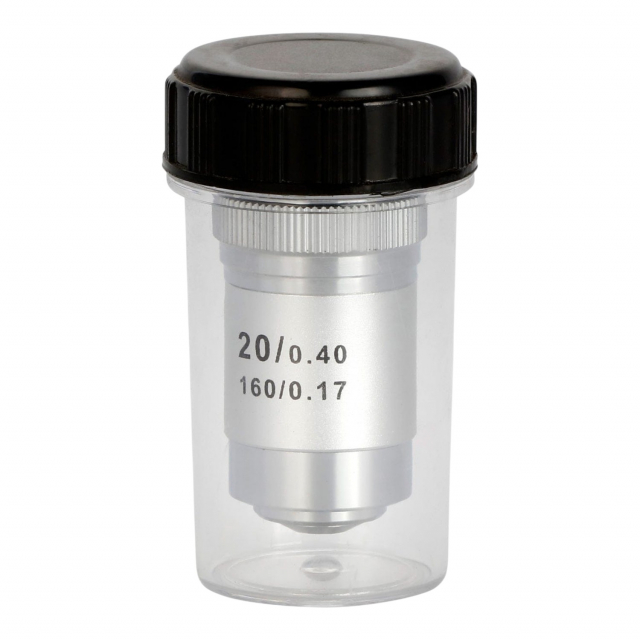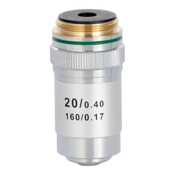 This is a 20X achromatic objective lens for DIN-standard microscopes. Intended primarily for biological applications, Achromatic correction provides improved color accuracy and resolution.