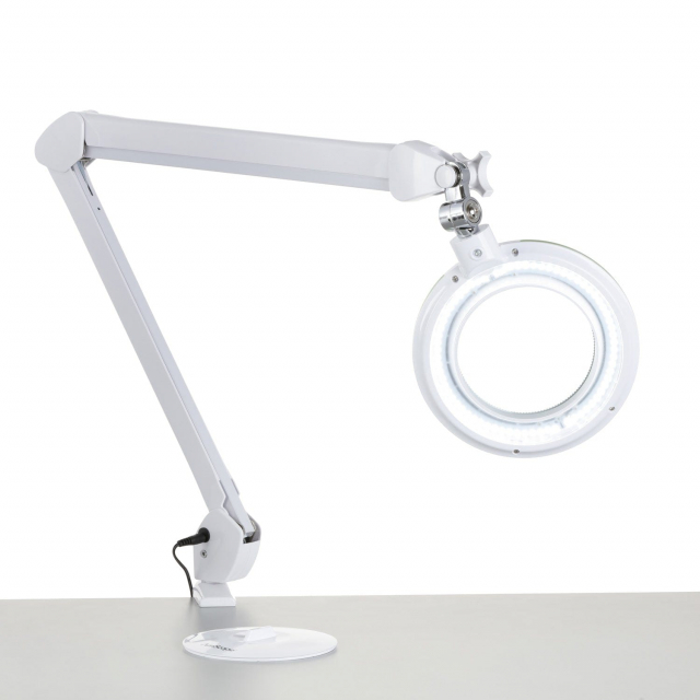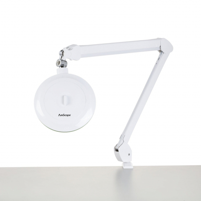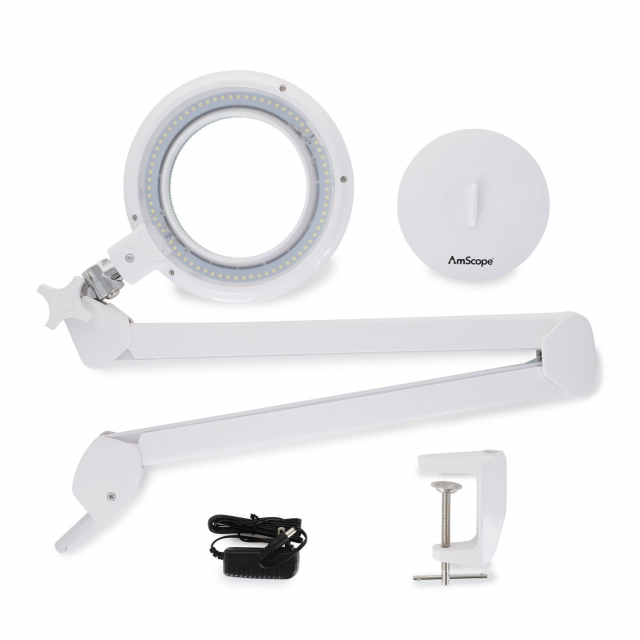 AmScope, MAGLED-8066D8, 1.75X Magnification 5" Diameter Lens 3 Diopter LED Magnifying Lamp on Articulating Arm with Heavy-Duty Table Clamp