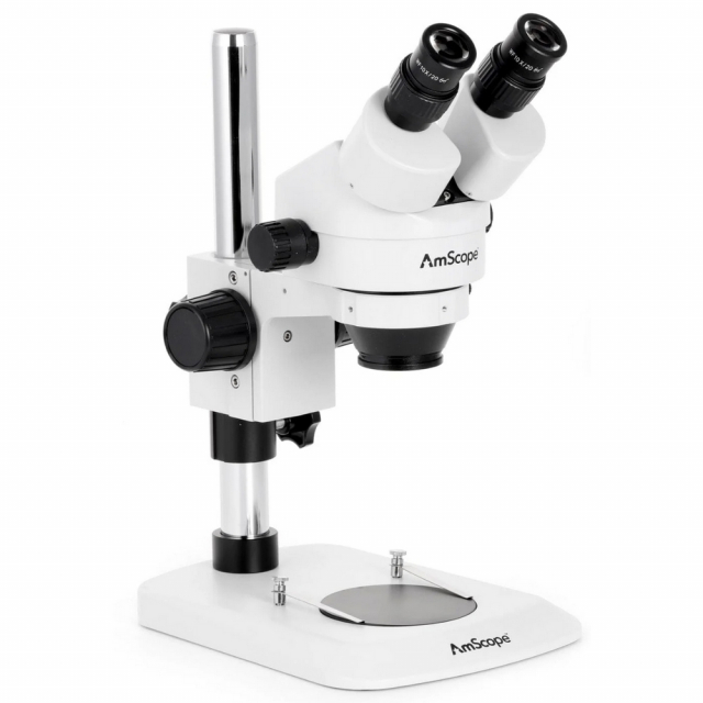 The stereo optics provide clear, sharp images with excellent focus-depth and a large working-distance. with 0.7X-4.5X zoom objectives, moving through the magnification range is as easy as turning a knob. 10X and 20X eyepieces are included, as well as 0.5X and 2X Barlow lenses to provide an expanded magnification range from 3.5X-180X, with high-eyepoint optics to accommodate glasses or goggles.