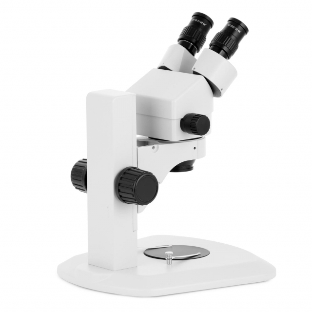 This is a binocular stereo zoom microscope with a precision track-stand. It incorporates all the most excellent features of a high quality laboratory instrument. Designed to meet the demands of modern microscopy applications, this microscope exceeds all expectations. It comes with SUPER widefield optics and offers high resolution and good depth within a broad field of view. It provides crystal clear sharp stereo images with a 4" (100mm) native working distance. Its 45 degree inclined ocular tubes ensure an easy observation and rubber eyeguards provide further comfort.