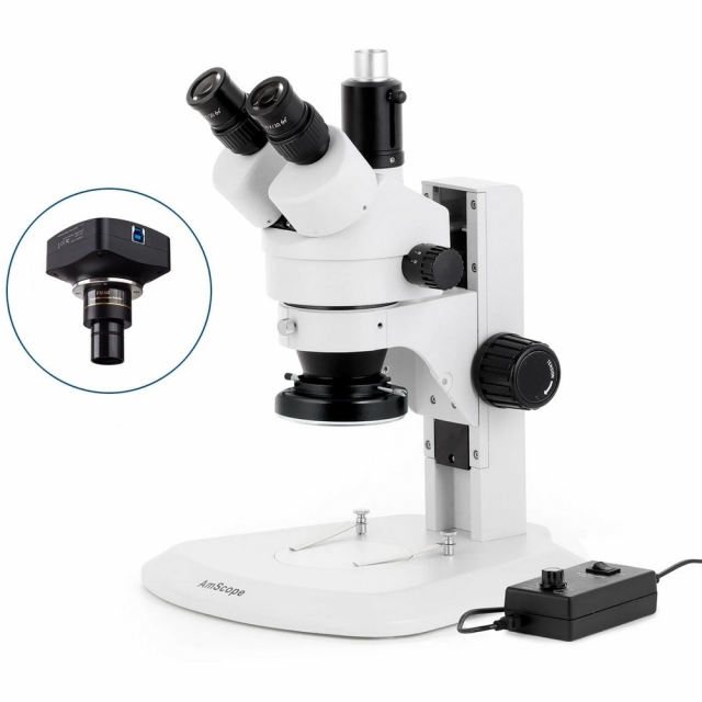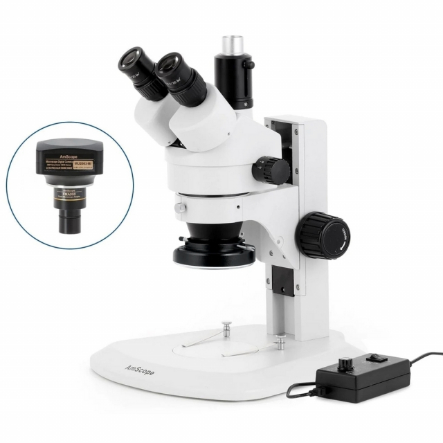 AmScope, SM-1TRZZ-144-20MBI3, SM-1 Series Zoom Trinocular Stereo Microscope, 3.5X-180X Magnification with 144 LED Ring Light and 20MP, USB 3.0 C-Mount Camera on Track Stand