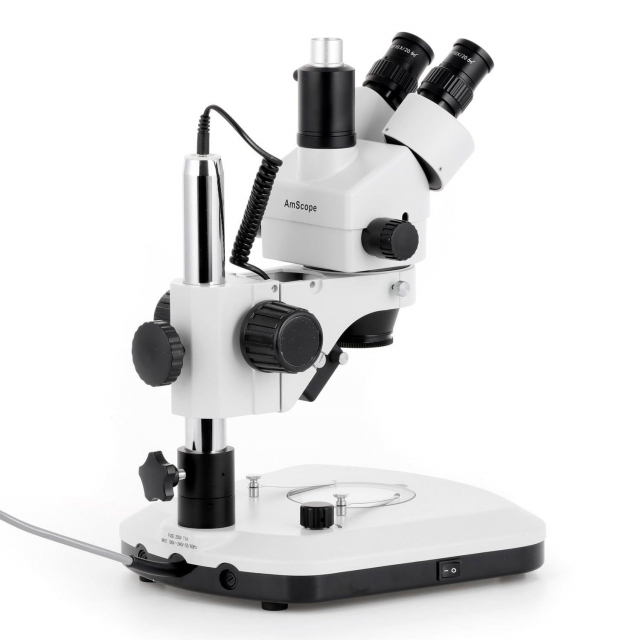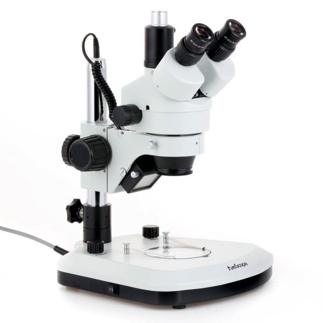 AmScope, SM-1TZ-PL-3M, SM-1 Series Zoom Trinocular Stereo Microscope 3.5X-90X Magnification with LED Light, 3MP USB 2.0 C-mount Camera on Pillar Stand
