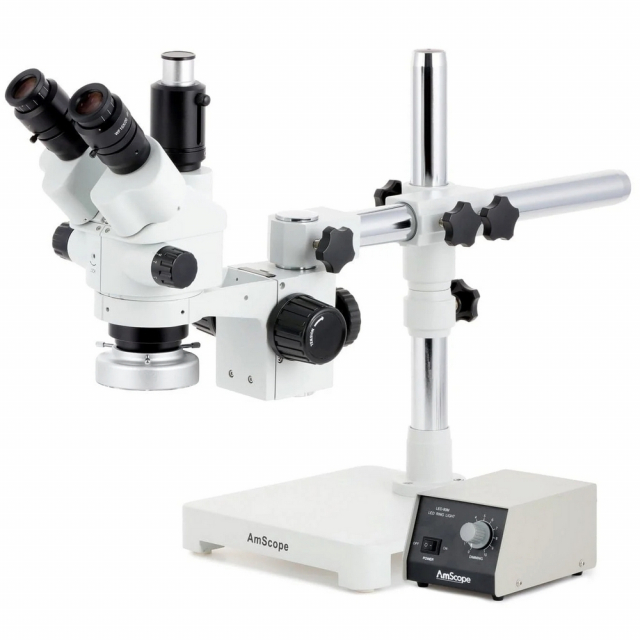 - A highly-versatile stereo microscope on a robust single-arm boom-stand which allows the microscope to be positioned at virtually any angle
