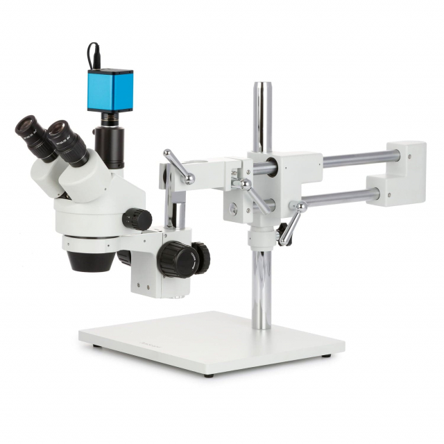 - A highly-versatile stereo microscope on a heavy-duty, multi-pivot boom-stand which allows the microscope to easily swing into place when needed, and away when not.