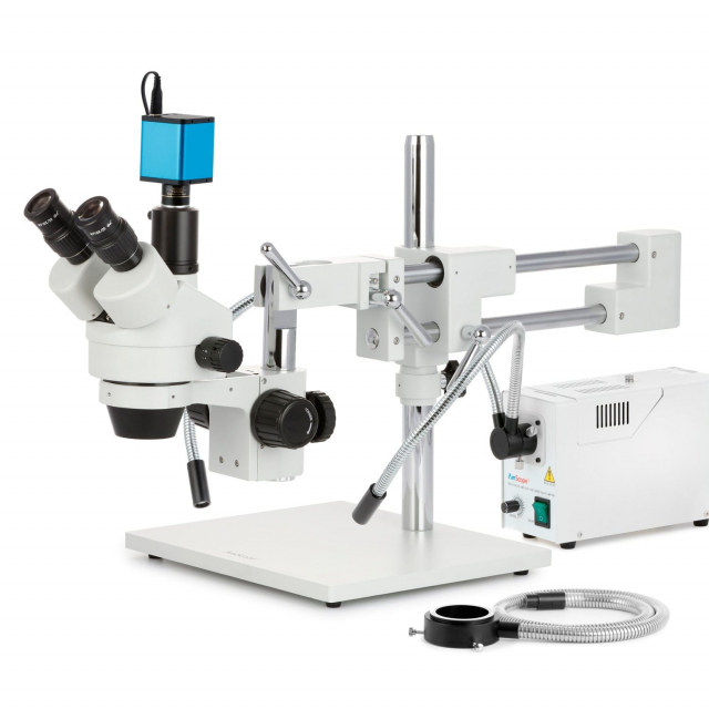 - A highly-versatile stereo microscope on a heavy-duty, multi-pivot boom-stand which allows the microscope to easily swing into place when needed, and away when not.