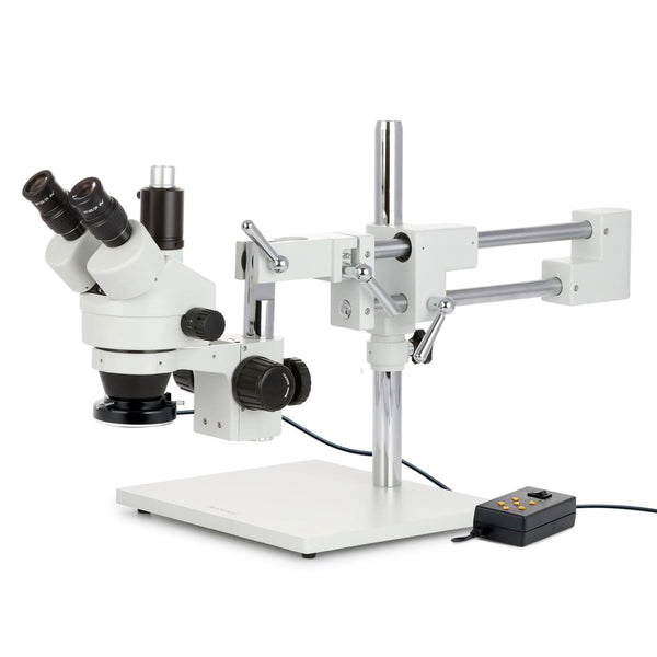 - A highly-versatile stereo microscope on a heavy-duty, multi-pivot boom-stand which allows the microscope to easily swing into place when needed, and away when not.