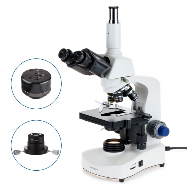 AmScope, T340-DK-LED-6MBI3, T340 Series LED Darkfield Trinocular Compound Microscope 40X-1000X Magnification with 6MP Digital Camera