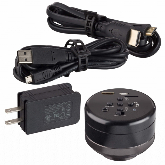 Monitor and capture photos and videos with the included 6.3MP USB3.0 camera. The highly-sensitive back-illuminated sensor is designed for improved low-light imaging, making it suitable for fluorescence and darkfield microscopy. A 0.5X reduction lens is included to capture more of the microscope's field-of-view. The professional software for Windows provides a wide assortment of capture and photo-editing functions including color correction, time-lapse capture, image stitching, and a full complement of measuring tools. A lite version of the software is for Mac and Linux with essential functionality for capturing photos and videos.