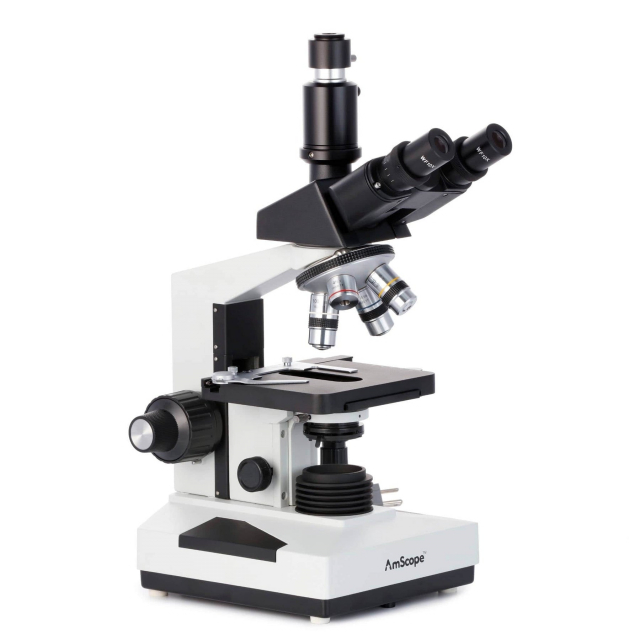 AmScope, T490-PCS-6MBI3, T490 Series Phase-Contrast Simul-Focal Trinocular Compound Microscope 40X-1000X Magnification with 20W Halogen, 3D Mechanical Stage and 6.3MP USB 3.0 C-mount Camera