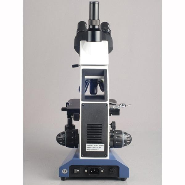 The halogen sub-stage lighting provides bright illumination with excellent color rendering. The warm lighting is better suited for prolonged use, causing less eyestrain than LED and fluorescent lighting. The Abbe light condenser has a high 1.25 numerical aperture for oil-immersion, and an iris diaphragm to optimize contrast and depth-of-field. The condenser holder uses rack-and-pinion movement for precise height adjustment, and has centering screws for properly aligning the condenser.