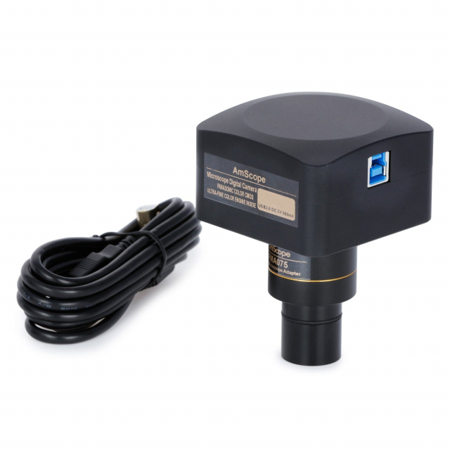 Monitor and capture photos and videos with the included 12MP USB3.0 camera. The sensitive back-illuminated sensor is designed for improved low-light imaging, making it suitable for fluorescence and darkfield microscopy. A 0.75X reduction lens is included for use with 23mm-30.5mm ports to capture more of the microscope's field-of-view. The professional software for Windows provides a wide assortment of capture and photo-editing functions including color correction, time-lapse capture, image stitching, and a full complement of measuring tools. A lite version of the software is for Mac and Linux with essential functionality for capturing photos and videos.