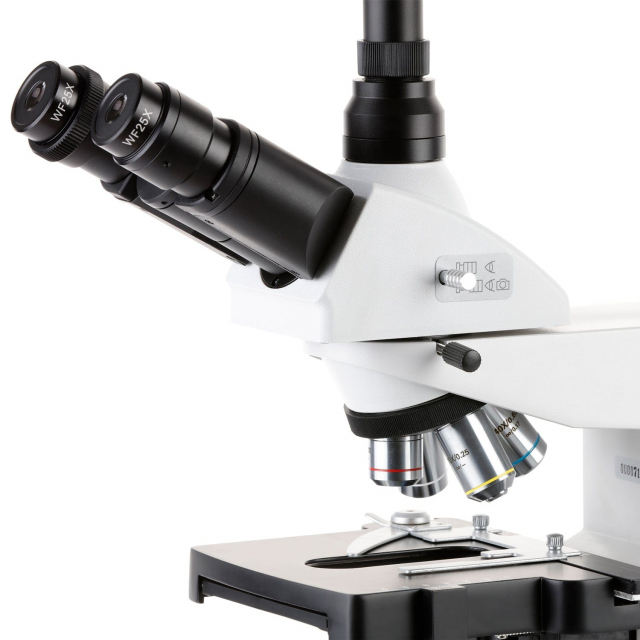 - The adjustable trinocular photo port allows you to easily mount a camera for real-time monitoring or capturing photos and videos.