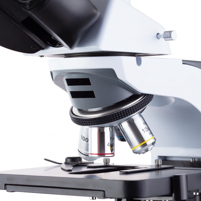 - Four objective lenses: 4X, 10X, 40X, 100X