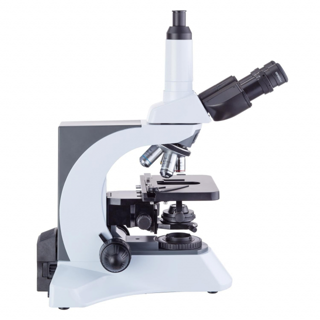 - The trinocular head provides a dedicated photo port for mounting a camera.