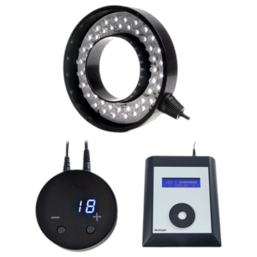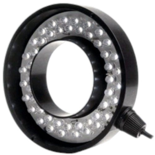 High Power LED ring light source. Illuminations LEDs have gained acceptance in both quality control applications and in production. Light-emitting diodes have the advantage of being a cold light source with a constant spectral output over very long life times. Maximum illuminance in metal construction for professional usage.