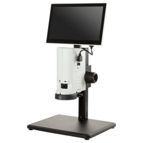 The digital MacroZoom microscope is built around one 0.7 to 5x zoom objective and enables inspection of objects directly on an 11.6" LCD screen, -5° to 15° inclination. This kind of microscope is well-suited for inspection and quality control departments.