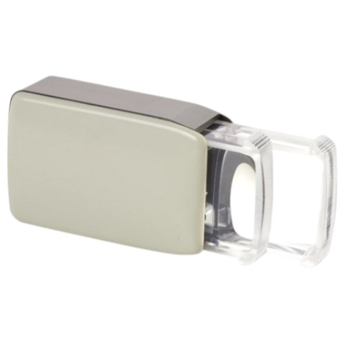 This special magnifying glass has special configurations. It is mounted in a small box, and both magnifiers can be slid in and out.