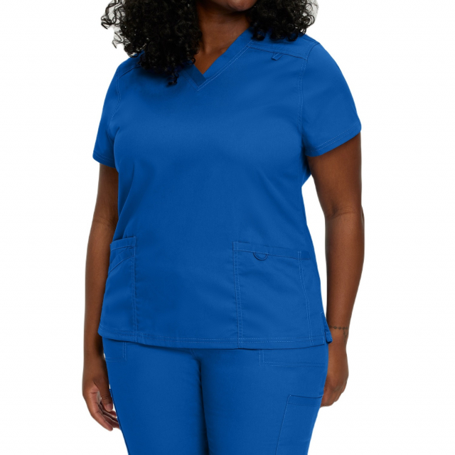This V-neck scrub top features a banded neckline and side vents for extra movement and flexibility throughout your work day. Three total pockets provide plenty of storage for all your medical essentials. Modern fit is tailored to enhance your shape without constricting your movement, and 2-way comfort stretch helps give you the added flexibility required for your work wear.