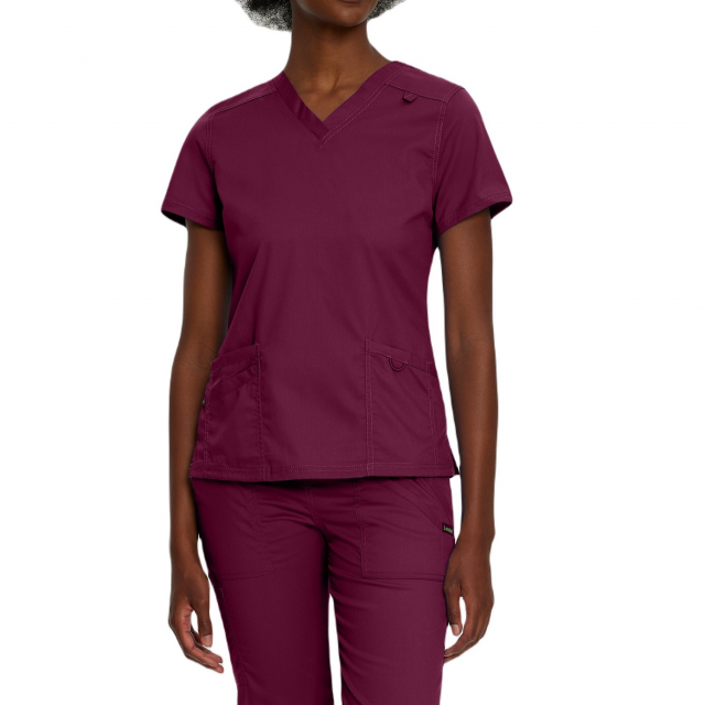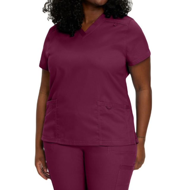 This V-neck scrub top features a banded neckline and side vents for extra movement and flexibility throughout your work day. Three total pockets provide plenty of storage for all your medical essentials. Modern fit is tailored to enhance your shape without constricting your movement, and 2-way comfort stretch helps give you the added flexibility required for your work wear.
