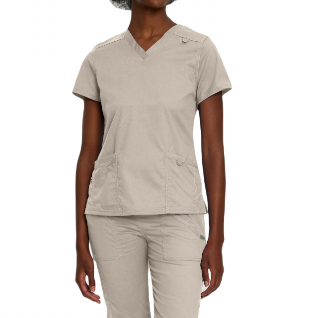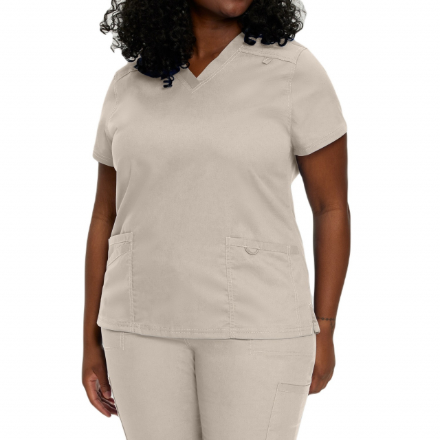 This V-neck scrub top features a banded neckline and side vents for extra movement and flexibility throughout your work day. Three total pockets provide plenty of storage for all your medical essentials. Modern fit is tailored to enhance your shape without constricting your movement, and 2-way comfort stretch helps give you the added flexibility required for your work wear.