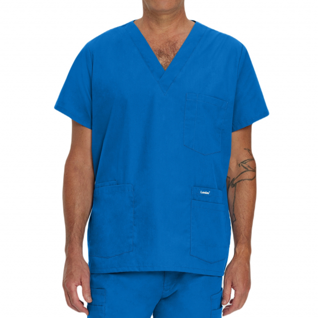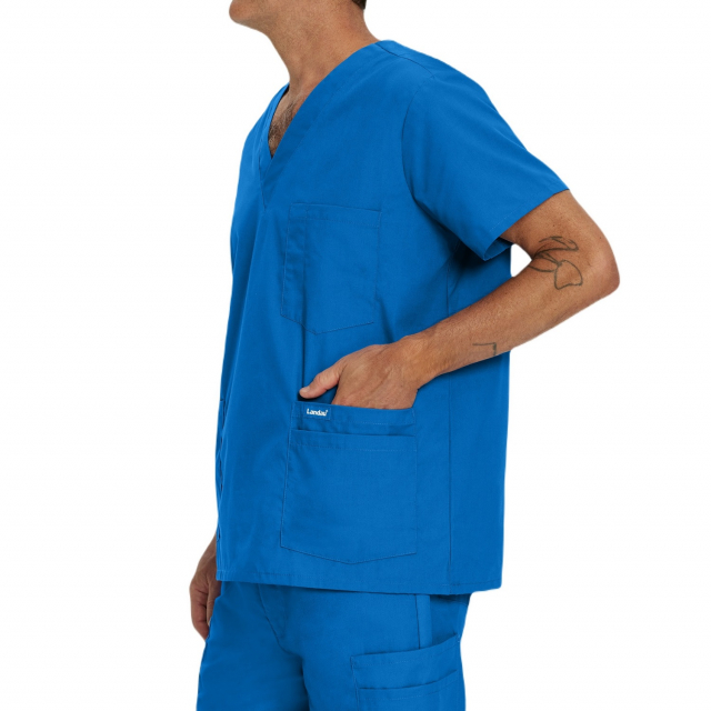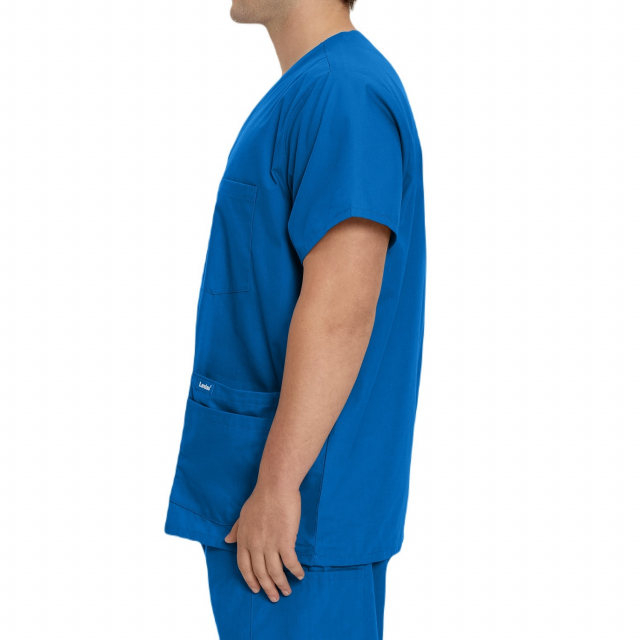 Landau, 7489-BEP-TSM, Essentials Royal Blue Men's 5-Pocket V-Neck Scrub Top, TSM