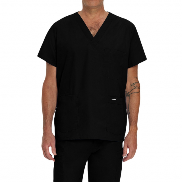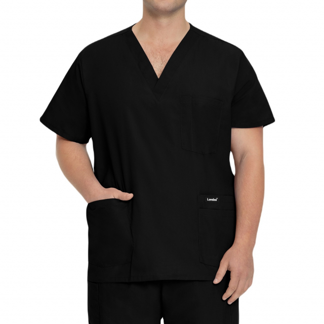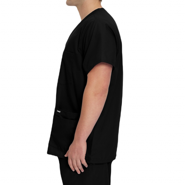 Landau, 7489-BKP-LGE, Essentials Black Men's 5-Pocket V-Neck Scrub Top, LGE