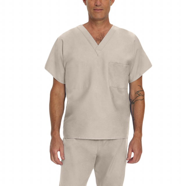 Landau, 7502-SAP-XXL, Essentials Sandstone Unisex Reversible 1-Pocket V-Neck Scrub Top, XXL