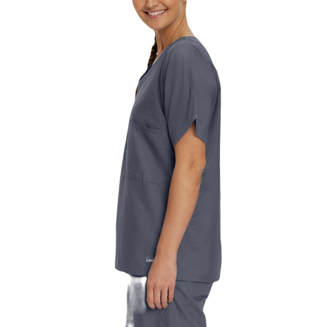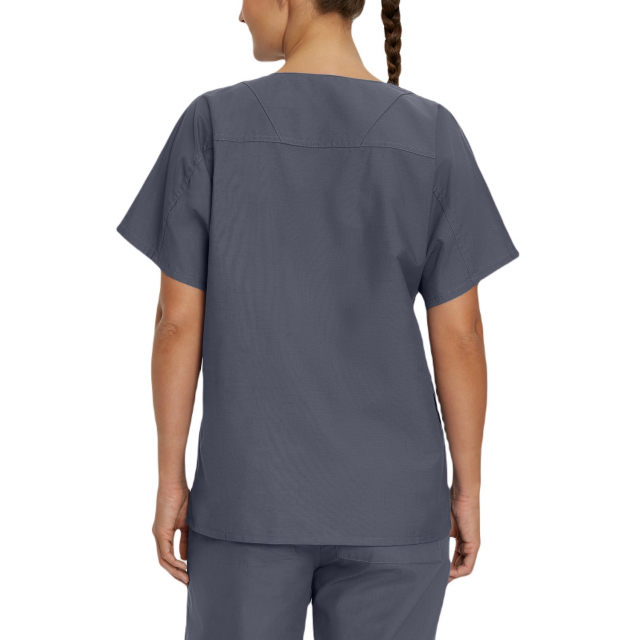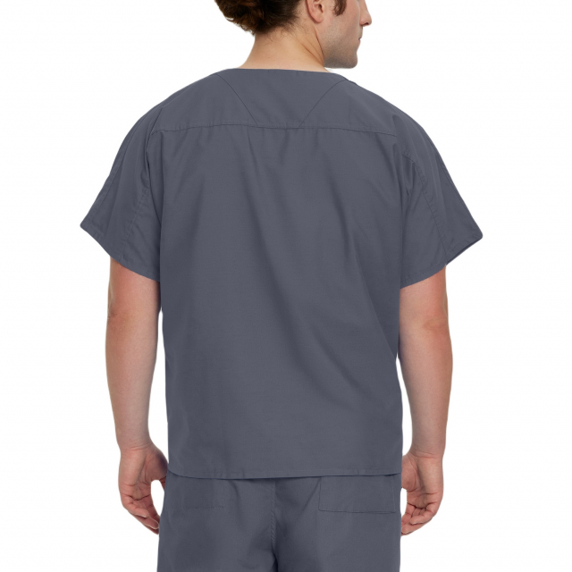 Comfortable and functional, this V-neck scrub top features a generous unisex fit complemented by dolman sleeves for added freedom of movement and all-day wearability. A reversible silhouette features one interior and one exterior breast pocket, ensuring your medical essentials are always within easy reach.