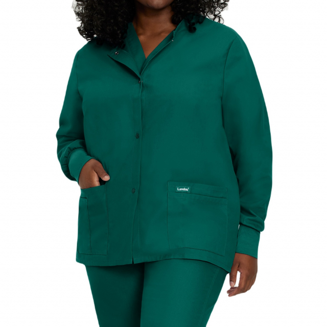 Landau, 7525-GHP-4XL, Essentials Hunter Green Women's 4-Pocket Warm-Up Scrub Jacket, 4XL