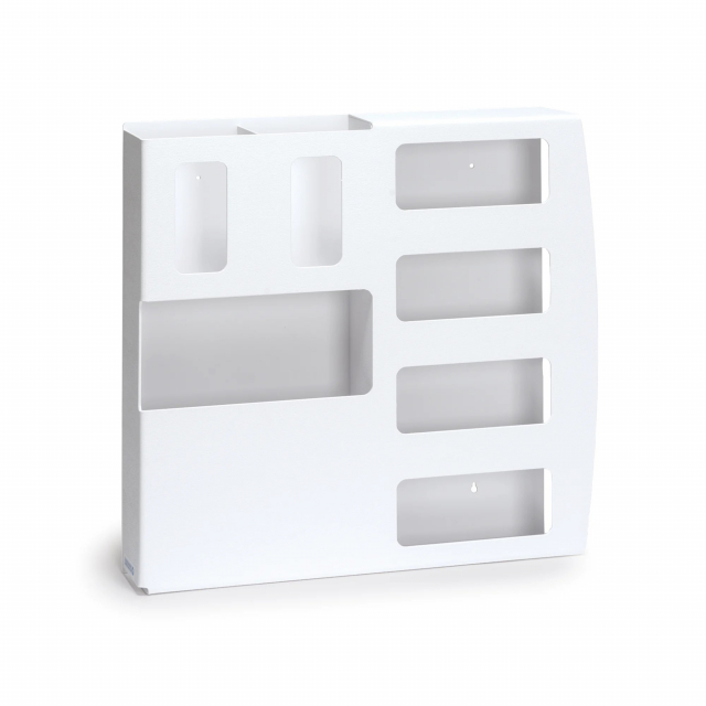 The White ABS Quad Isolation Station is a personal protective equipment organizer that takes up little space and holds large amounts of PPE, saving you restocking time. Keep an abundant supply of gloves, masks, and gowns nearby.