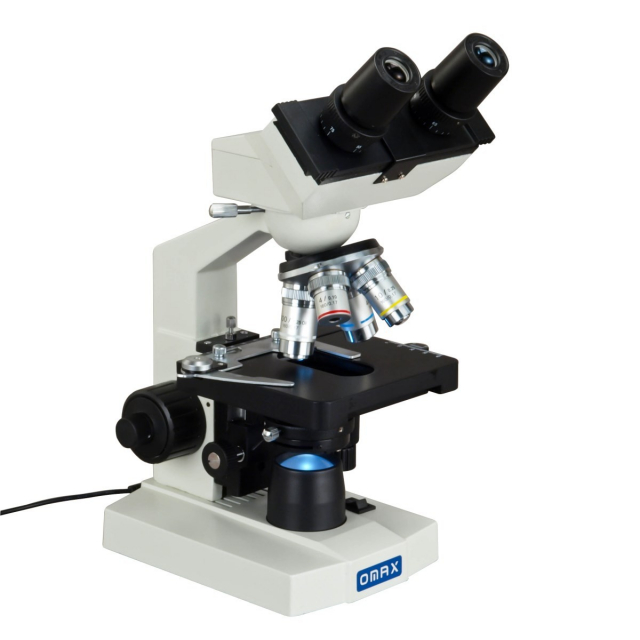 This OMAX binocular biological compound microscope offers six magnifications between 40X and 2500X. This type of microscope is perfect for home school, teaching, demonstration, clinical examination, laboratories and advanced applications. It is easy to mount an electronic eyepiece (digital microscope camera) for capturing images and live video on computer. It can also be added a darkfield condenser to switch a brightfield microscope to a darkfield microscope.