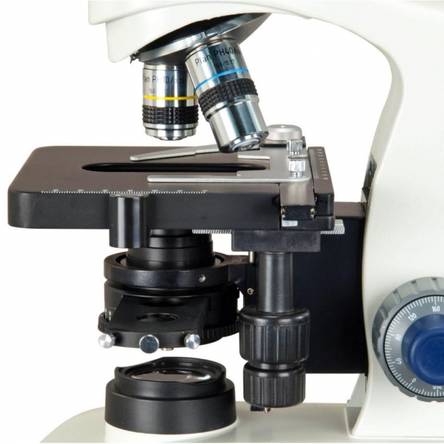 The trinocular compound siedentopf LED microscope provides phase contrast microscope system and brightfield microscope system. The compound microscope features an optical system for observing images through eyepieces and an adjustable trinocular port. It offers six levels of brightfield magnification from 40X to 2500X. This phase contrast compound microscopy is widely used clinical, biological, research and schools, specially for observing live cells.