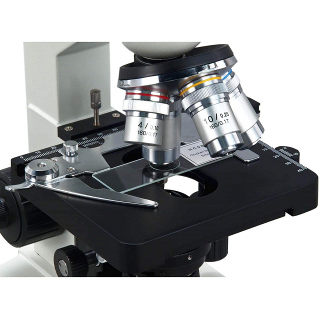 - Double layer mechanical stage and coaxial coarse and fine focus knobs on both sides