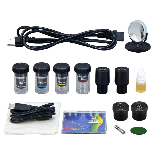 OMAX, MD827Z30L-A191, 40X-2500X Built-in 3MP Digital Camera Compound LED Microscope and Dry Darkfield Condenser