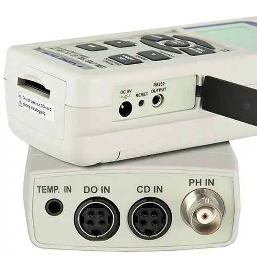 PCE-PHD 1-R Multifunction Conductivity Meter is a portable, easy-to-use measuring device with multiple capabilities for inspecting water quality. Offering extraordinary precision at an affordable price, the Multifunction Conductivity Meter is used for laboratory and in situ testing of the pH value, redox, conductivity, salt content, oxygen level and temperature of water.