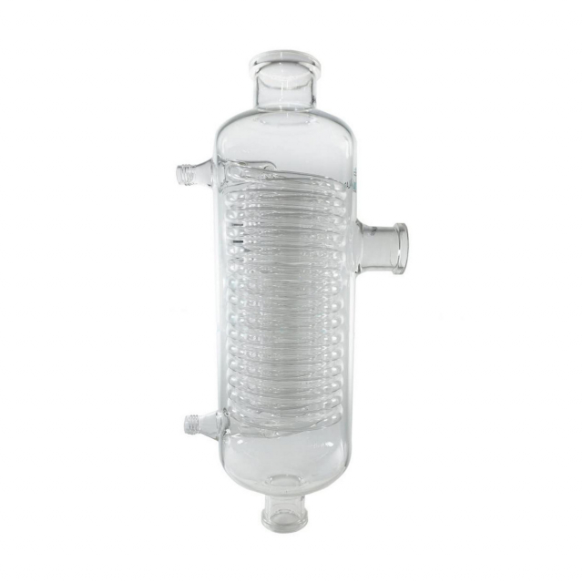 Auxiliary Glass Condenser fits 20L/RE-1020 & 50L RE-1050 Rotary Evaporator Systems. The condenser is constructed with thick walled GG-17 glass for maximum durability and heat resistance.
