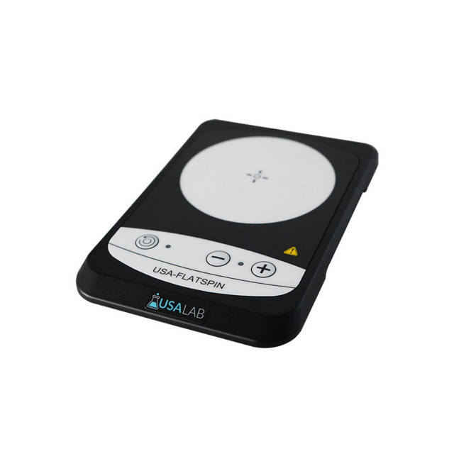 USA Lab Flat Spin Lab Stirrer is an ultra-flat compact stirrer ideal for stirring applications. Its space saving design minimizes bench space and portable due to its light weight. With excellent stirring functionality, the compact shape of FlatSpin takes less bench space and makes storage easier.